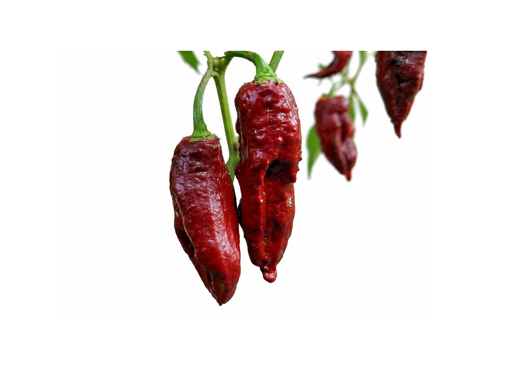 Rozkošně čokoládově zbarvený nádech Bhut Jolokie, skutečný nádech severojižní Indie, objevený teprve před několik lety. Čistota a chuť jsou velice podobné obvyklým červeným plodům ale některé dorůstají výjmečných velikostí. Odrůda byla pojmenována podle barvy, ale rozhodně nechutná čokoládově!!!