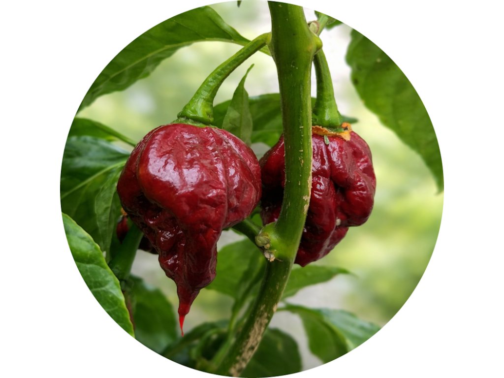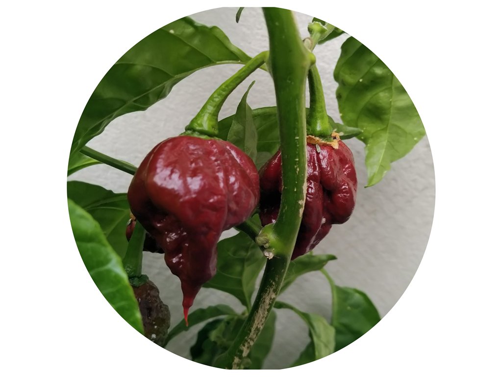 Toto je čokoládová odrůda nejpálivějšího chilli světa "Carolina Reaper". Od prosince 2013, je Carolina Reaper zapsána v Guinessově knize rekordů jako nejpálivější chilli světa. S průměrnou pálivostí 1,569,300 Scoville a dosahujícího maxima více než 2,2 mil. Toto není chilli se kterým je radno si zahrávat. Plody dokonce vypadají namyšleně s jejich vroubkovanou, pomačkanou texturou a ocasem ve tvaru štíra.